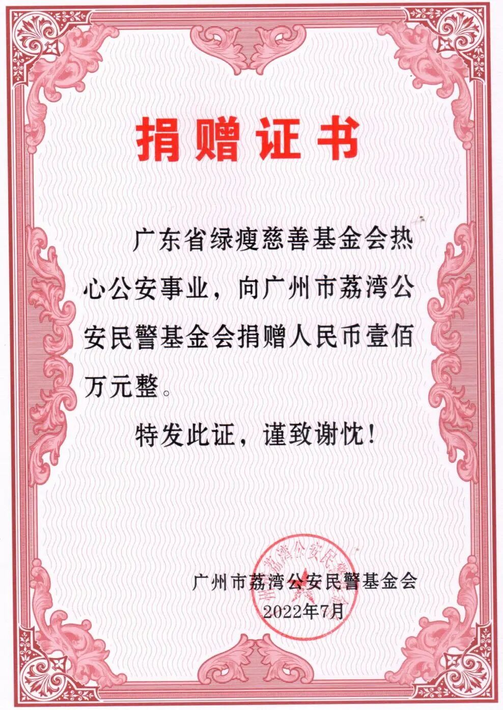 今年7月,壹健康集團(tuán)向廣州荔灣公安民警基金會(huì)捐贈(zèng)100萬(wàn)元,用于資助廣州市荔灣區(qū)公安局分局開(kāi)展對(duì)民警的慰問(wèn)和補(bǔ)助。